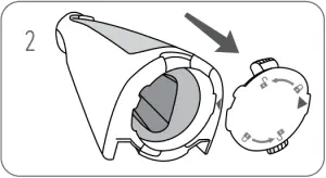 - To replace battery door, line up arrows, push and twist.