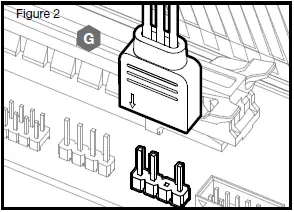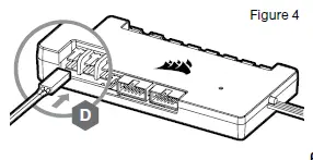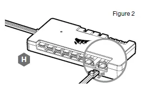- Insert the RGB connector in a CORSAIR iCUE Commander PRO port or Lighting Node PRO port (Figure 2).