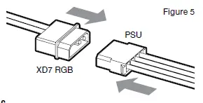 - Connect the XD7 RGB’s main power cable by plugging in a 4-pin Molex connector from your power supply (Figure 5).