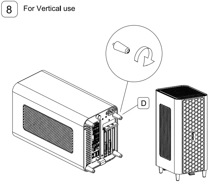 ![]() | Install the aluminum feet to the corresponding positions on the rear panel |