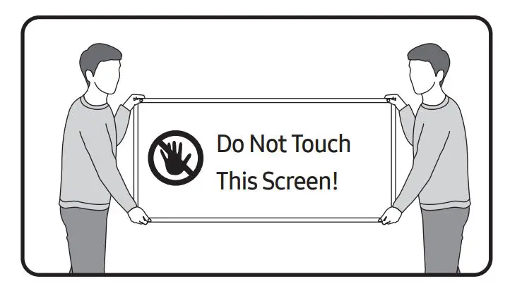 Warning: Screens can be damaged from direct pressure when handled incorrectly. We recommend lifting the TV at the edges, as shown. For more information about handling, refer to the Quick Setup Guide came with this product.