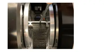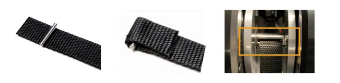 The belt automatically locks into the groove when you pull it firmly. Make sure you can see the edge of the band when it’s in place in the shaft (highlighted in third photo above).