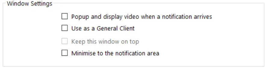 – Keep this window on top can be set to ensure the Widget will always display on the PC screen, this can only be enabled if Use as a General Client is also enabled.