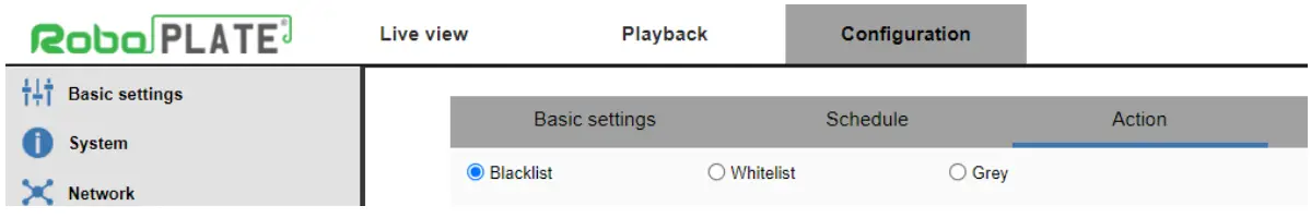 The action relay can be triggered subject to vehicles detected in the black/ white list or grey (unknown) vehicles.