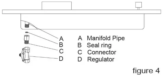 As shown in figure 4 the included regulator must be used when connecting the FOTILE appliance to your gas supply. This item has been customized by FOTILE to meet all applicable safety requirements. Make sure the regulator is easily accessible for adjustment after the appliance has been installed.