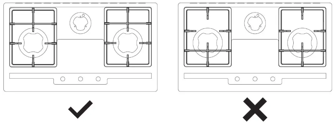 The pan support of GAS78307 should be placed as follows (Do not put it wrong)