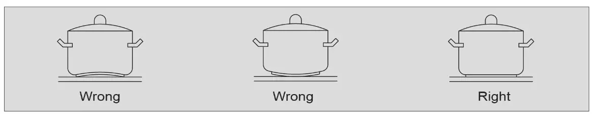 - Please make sure the diameter of the pan used is equal to or more than the cooking area.