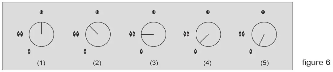 Check that all the burners are operating correctly. The flame must not go out on the lowest setting, or when the control is turned quickly from a high to a low setting. On the highest setting, the flame must have a distinctive and visible core.