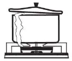 | Do not use large pots or heavy weights which can bend the pan support or deflect flame onto the hotplate. | |