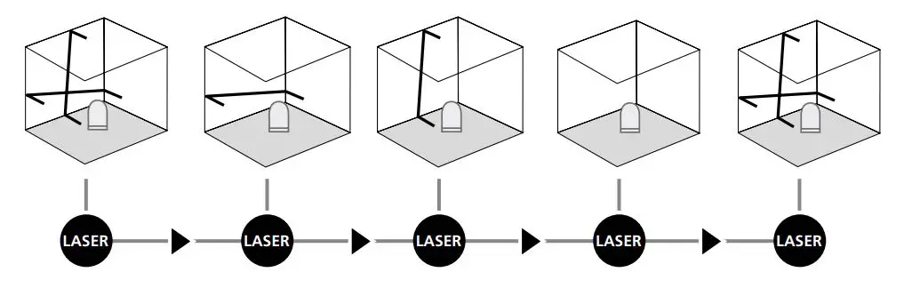 The automatic cross-line laser for aligning tiles, wall studding, windows, doors etc.
