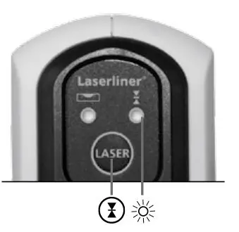 as the laser lines are no longer aligned automatically. The LED (2) lights constantly red.