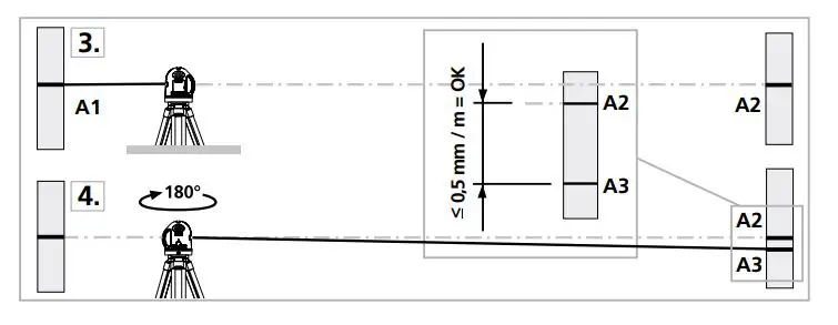 When A2 and A3 are more than 0.5 mm / m apart, an adjustment is necessary. Contact your authorised dealer or else the UMAREX- ! LASERLINER Service Department.