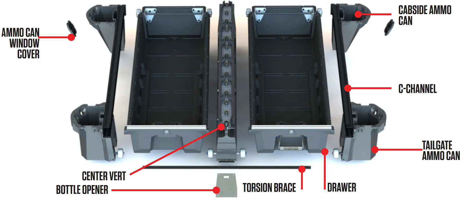 - Place C-channel on the inside ledges of a cabside ammo can and a tailgate ammo can.