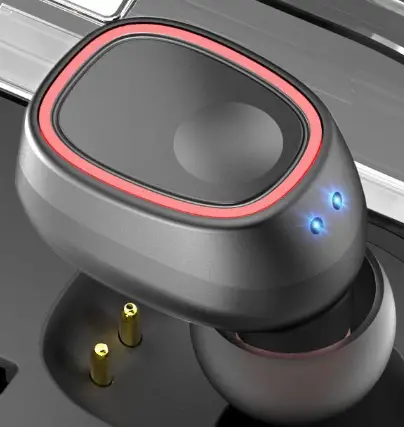 Step1: Place make sure “R””L”symbol is facing down( indicator-light facing down),then place headset into ear.