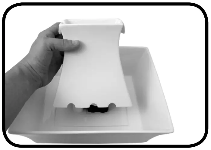 - Add water to the fountain as needed. Never let the water level fall below 1” (2.54 cm) in height or you may risk burning out the pump. Replacement pumps are sold separately by calling Customer Care at 800-732-2677 or online at www.petsafe.net.