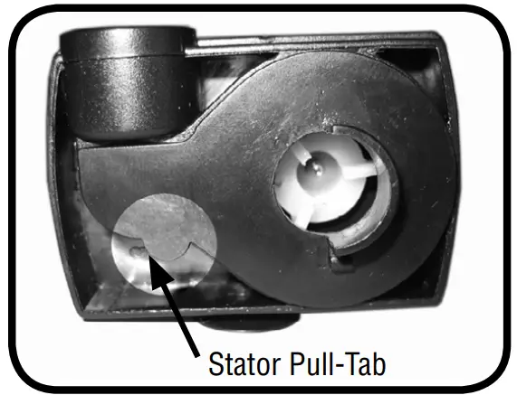 - Next, remove the stator by placing your fingernail underneath the small lip located on the narrow side of teardrop-shaped stator (Fig. 12