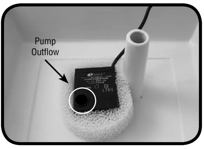 - Remove the pump from the fountain as explained in the Filters and Fountain Cleaning section (Steps 6 & 7).