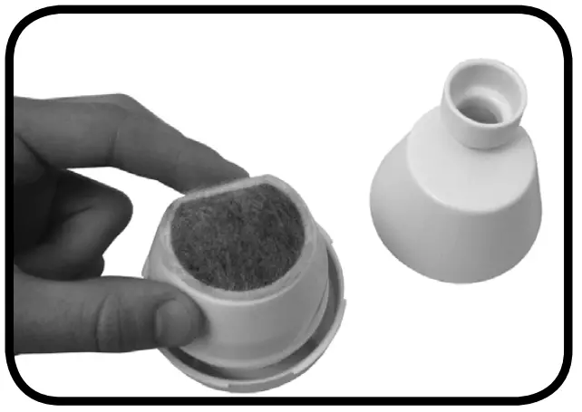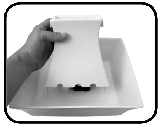 NOTE: Always rinse the charcoal filter prior to use. A small amount of charcoal dust may shed for the life of the filter, this is normal and not harmful to your pet. - Rinse the charcoal filter thoroughly in cold water to help remove any excess and loose charcoal dust. Once the filter is rinsed off, place inside the filter housing case with the larger side facing down (Fig.6).
