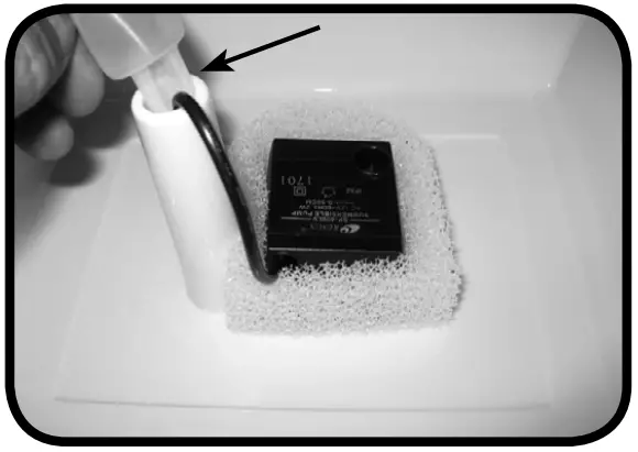 Open the case and remove the filter from inside. Set the filter housing aside for cleaning. - Remove the rubber cap affixed to the raised post by inserting a finger under the lip and pull straight up to remove (Fig. 11).