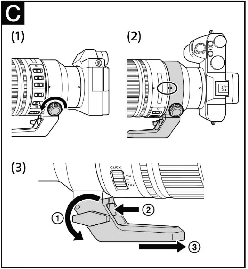 Detaching the tripod collar (See illustration C (3))
