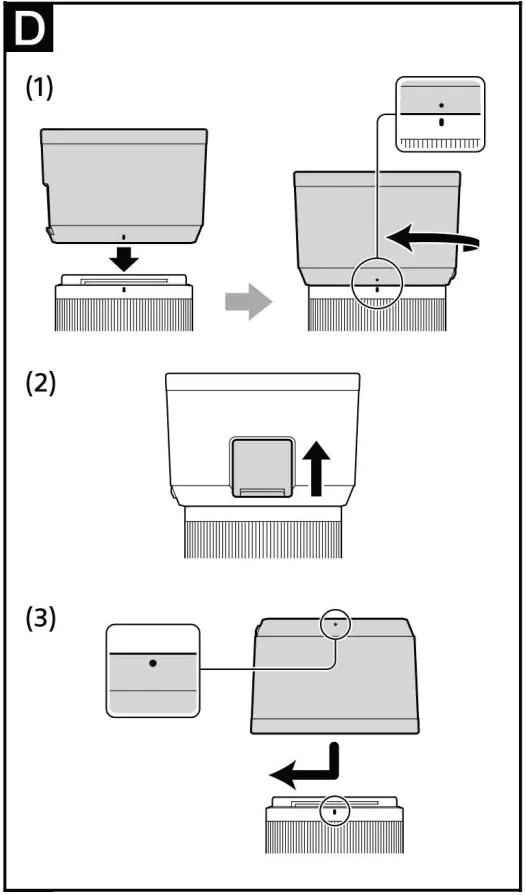 - Gray dots (tripod collar ring indexes) are located at 90° intervals on the collar ring. Align a gray dot on the tripod collar ring with the gray dot (tripod collar ring index) on the lens to adjust the camera position precisely (2).