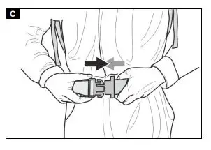 2. Engage the buckle of the hip belt and adjust the hip belt.