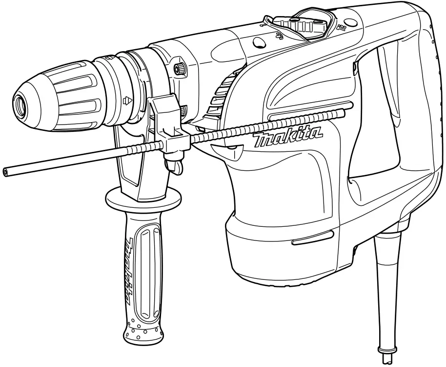 - Use the side handle only when chipping, scaling or demolishing. Do not use it when drilling in concrete, masonry, etc. The tool cannot be held properly with this side handle when drilling.