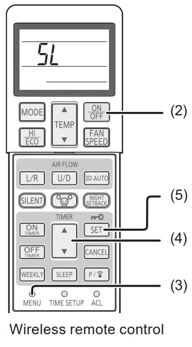 - Select the Wireless LAN connection setting “SL” by pressing the MENU switch on the wireless remote control.