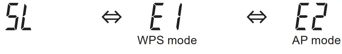 - Based on the router specifications confirmed in section 2, select “E1” (WPS mode) or “E2” (AP mode) using the ▲ and ▼ (TIMER) buttons on the wireless remote control.