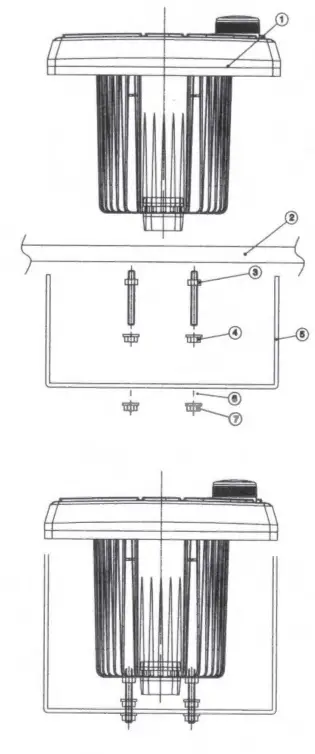 - Snug spring washer (6) and outer nuts (7) against mounting plate (2).