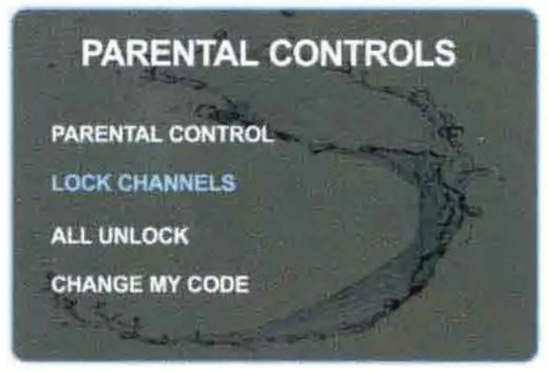 Turn VOL knob to move highlight to LOCK CHANNELS, then press SEL button to display the Channel list, tum VOL knob and push it at desired channel. If the selected charmel was locked, then press the knob will result unlock it; and if the selected channel was unlocked, press the knob will result lock it.