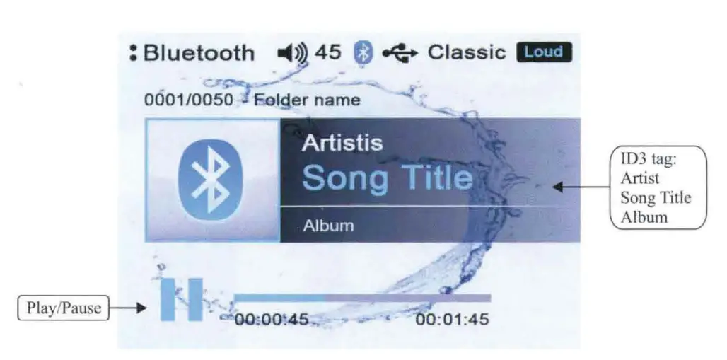 Play Once the BT device being paired is successful, music will begin to play. Note: For some Bluetooth enabled phones, you may need to activate play from your phone first. It depends on the phone itself. While BT Music is playing, press the PAUSE button to pause the playback, and press it again to resume playback.