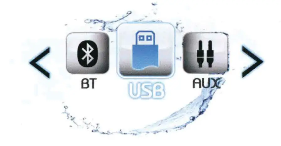At Home Screen, tum VOL knob and press it to select BT source. (The foreground pop up icon refers to the source changing.) Or press SOURCE button to select the desired source. Note: This input is designed to read and play USB drives (mp3 and wma files), not media or phones except iPod and iPhone.