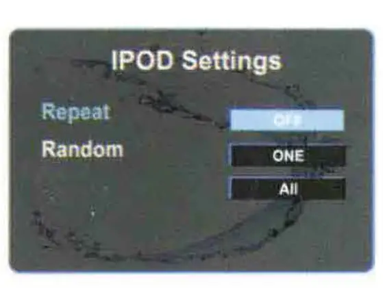 While iPod/iPhone is playing, press MENU button to show !POD settings, tum VOL knob and press at Random, then tum VOL knob to select off or on.