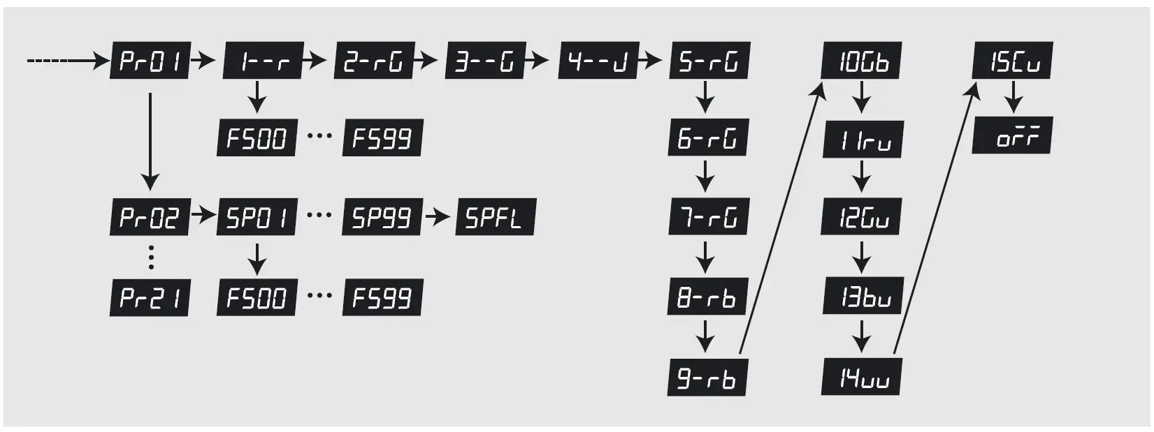 | 0 … 255 | Programme speed increasing | |