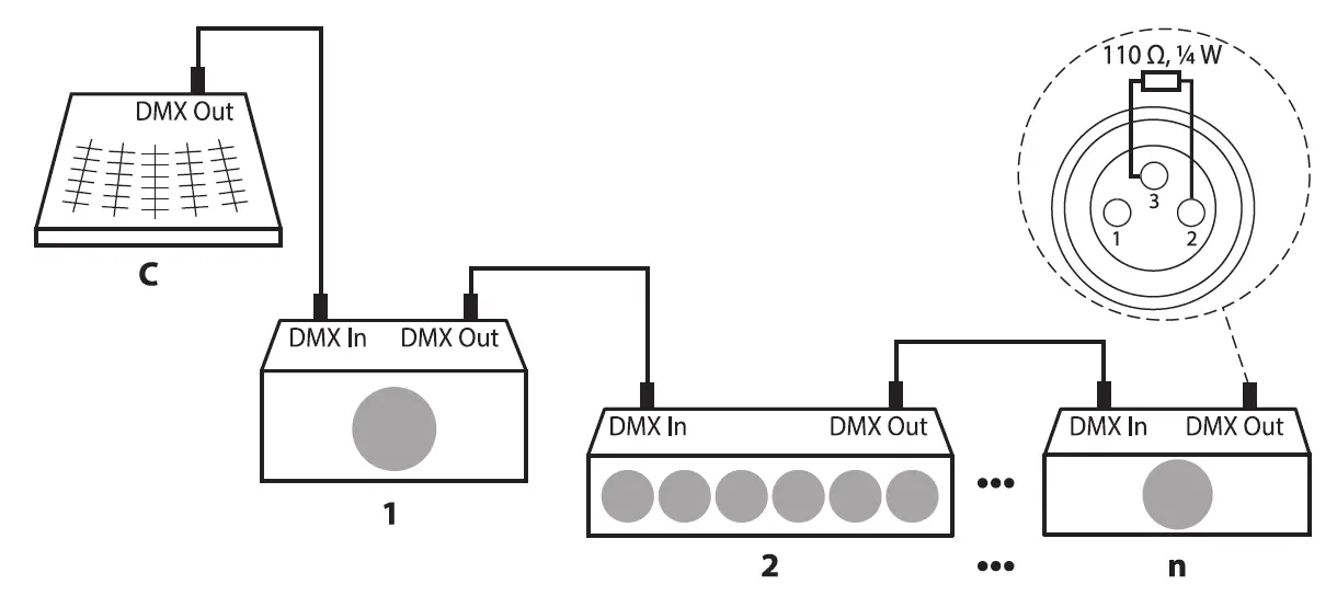 For error-free operation make use of dedicated DMX cables and do not use ordi‐nary microphone cables.