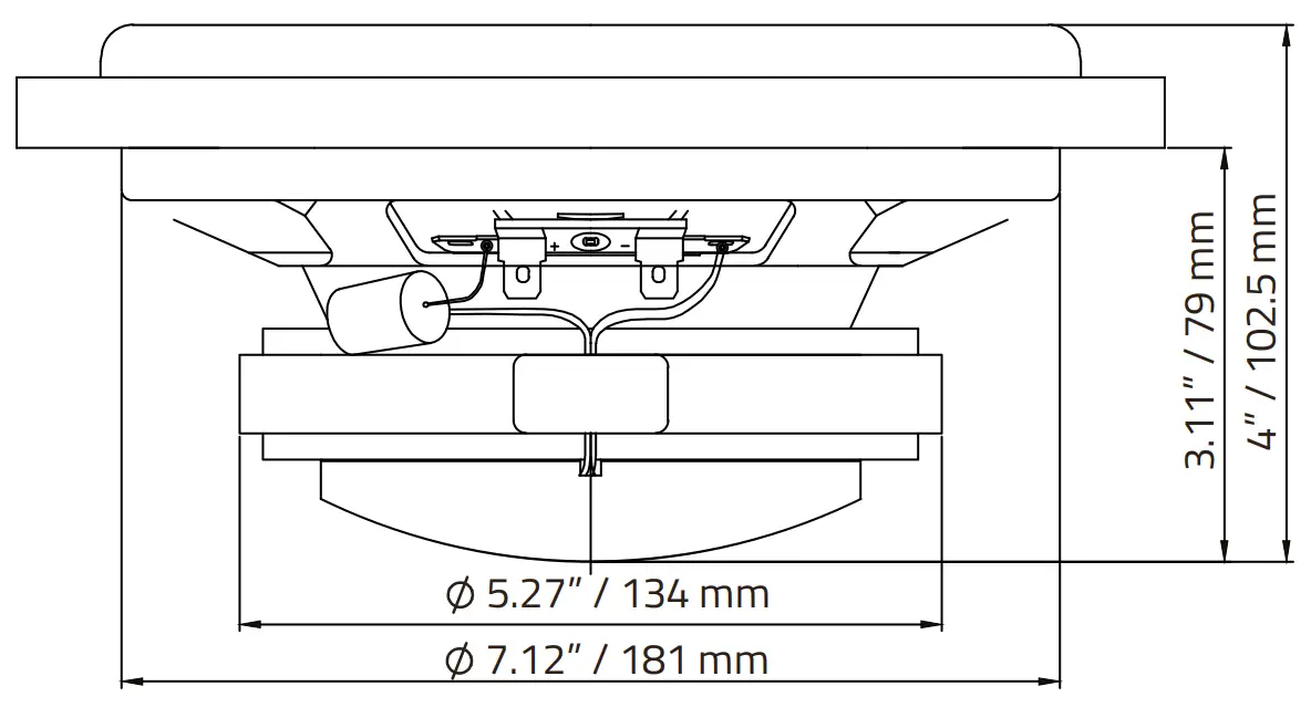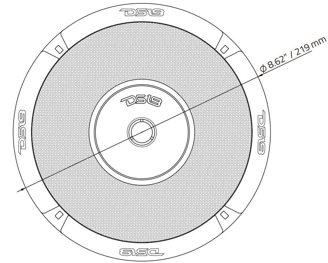 Front Mount Baffle Cutout ……………………………………………………………..7.12″ / 181mm