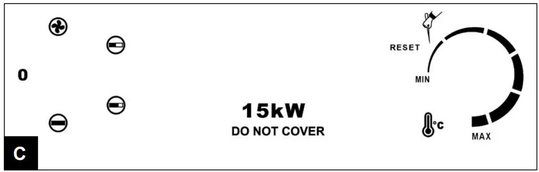 ![]() | 1 heating level – 1/3rd performance |