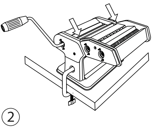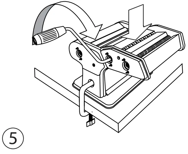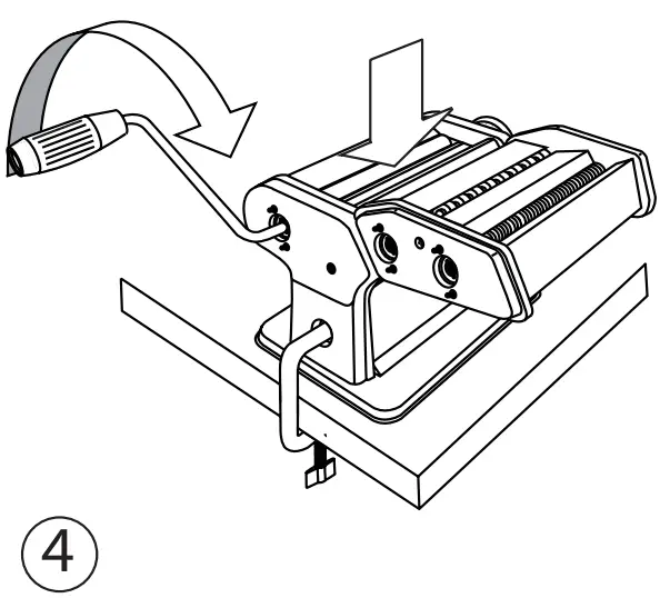- Pass a piece of dough through the appliance, turning the handle clockwise [Fig. 4].