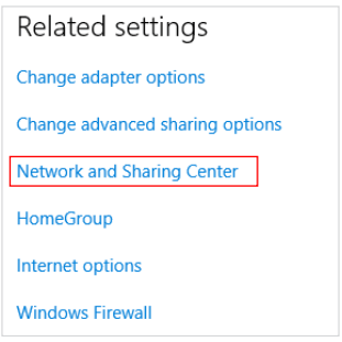 and select [Network Connections] from the list. - Select [Ethernet] and then [Network and Sharing Center].