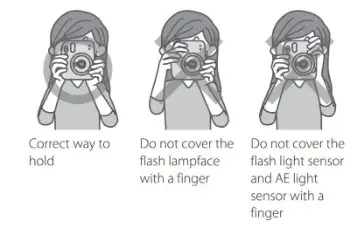- Hold the camera so that the flash lampface is at the top when taking a horizontal picture.