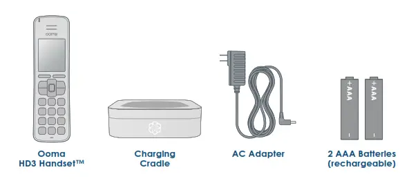 • On the Ooma HD3 Handset, the battery cover is removable and the rechargeable batteries may be replaced. Do not disassemble any other part of the Ooma HD3 Handset, it contains no user-serviceable parts.