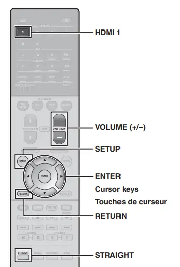 - Press STRAIGHT repeatedly to select “STRAIGHT” When “STRAIGHT” (straight decode) is enabled, each speaker produces each channel audio signal directly (without sound field processing).
