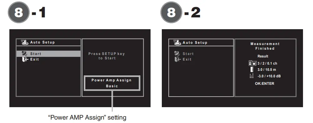 - Press SETUP The measurement will start in 10 seconds. It takes about 3 minutes to measure. Screen -2 appears on the TV when the measurement finishes.