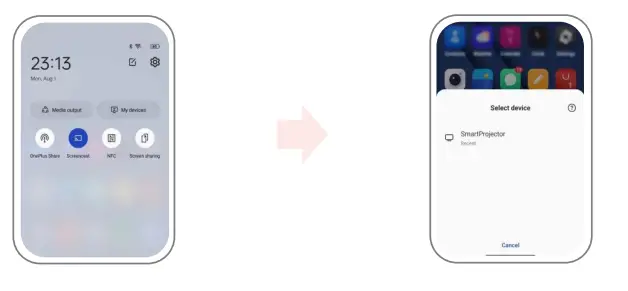 You can wirelessly cast the screen of your smartphone or tablet onto the projection surface.