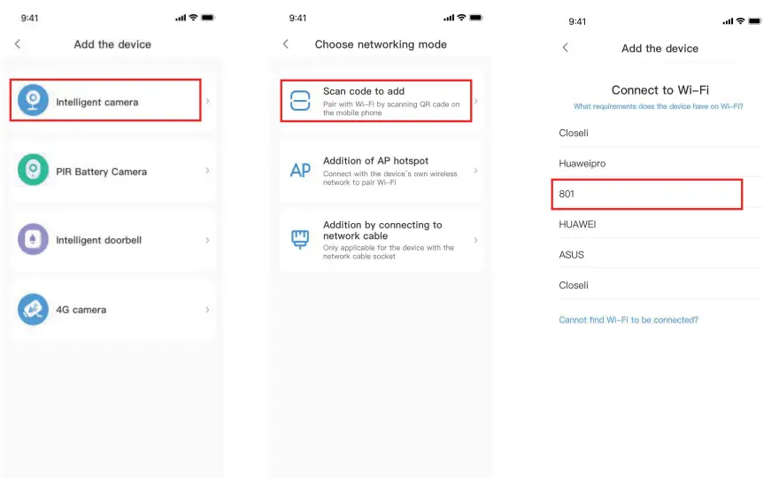 • connect the iPhone to the Wi-Fi network through configuration, and then add the camera, which can automatically read the network name.