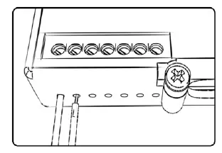 To input wires into the PC6 fi rst remove the rubber plug on the backside of the unit and loosen the screw for the corresponding input. Using a 22-24 gauge wire, strip about 10mm from its end. Push the wire into the hole of the PC6 until it stops and then tightens the screw. Make sure to reinstall the rubber plug.