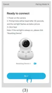 After 25s, the red indicator light will flash when camera is ready to be connected.