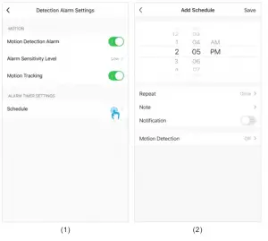Alarm Sensitivity Level: Motion detection has low, medium and high level;