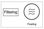 Wait for the filtering indicator to turn off then push the Flushing button for 5 seconds. The System will continue to dispense water for about 5 minutes until the internal pure water tank empties.